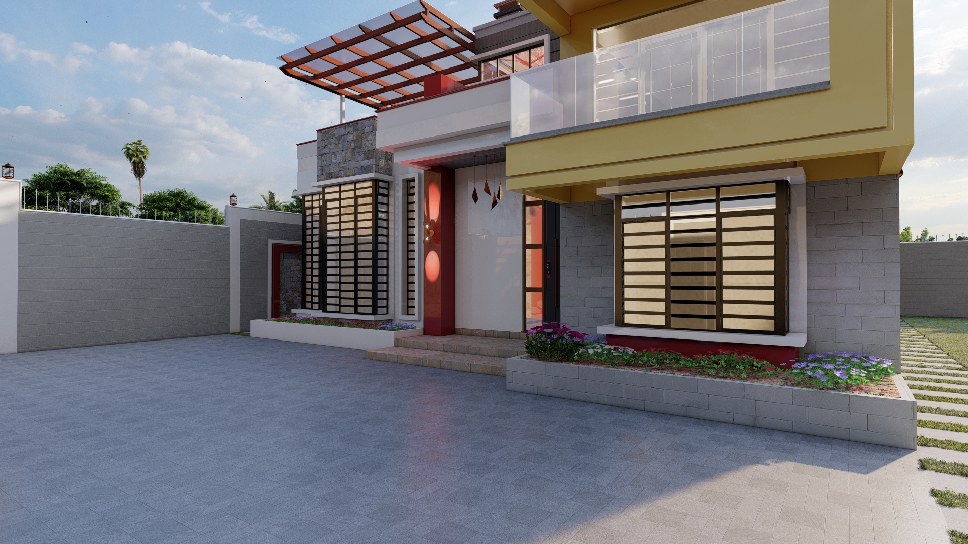 Situated in Kiahuria, Juja Subcounty, Kiambu County, this opulent architectural masterpiece takes the form of a luxurious Villa, spread across half an acre. The exterior design is a harmonious blend of vibrant colors and natural stone, creating a visually captivating façade. As you approach the entrance, a sliding gate ushers you in, and a magnificent hardwood door, standing at a striking 3 meters in height, welcomes you inside.